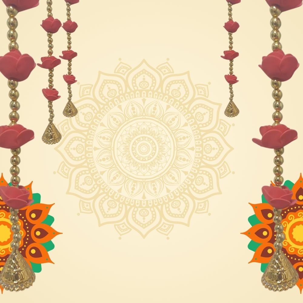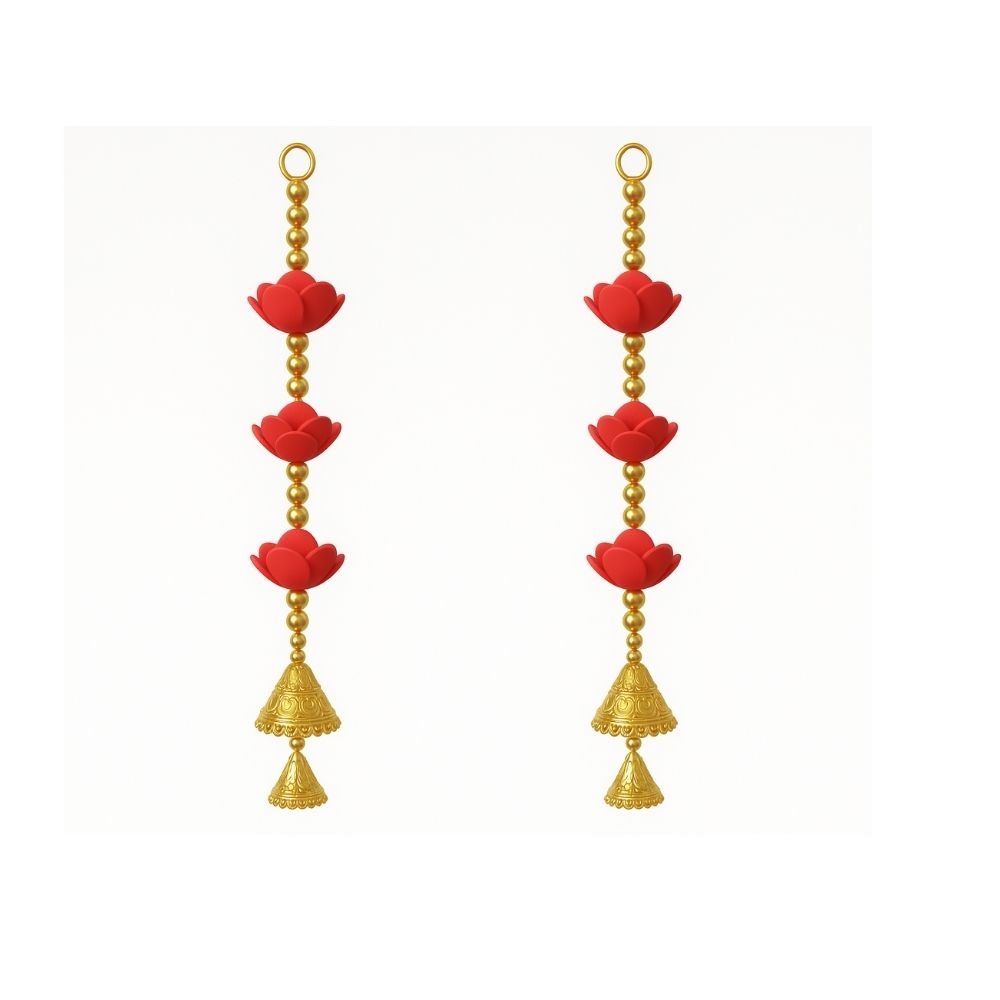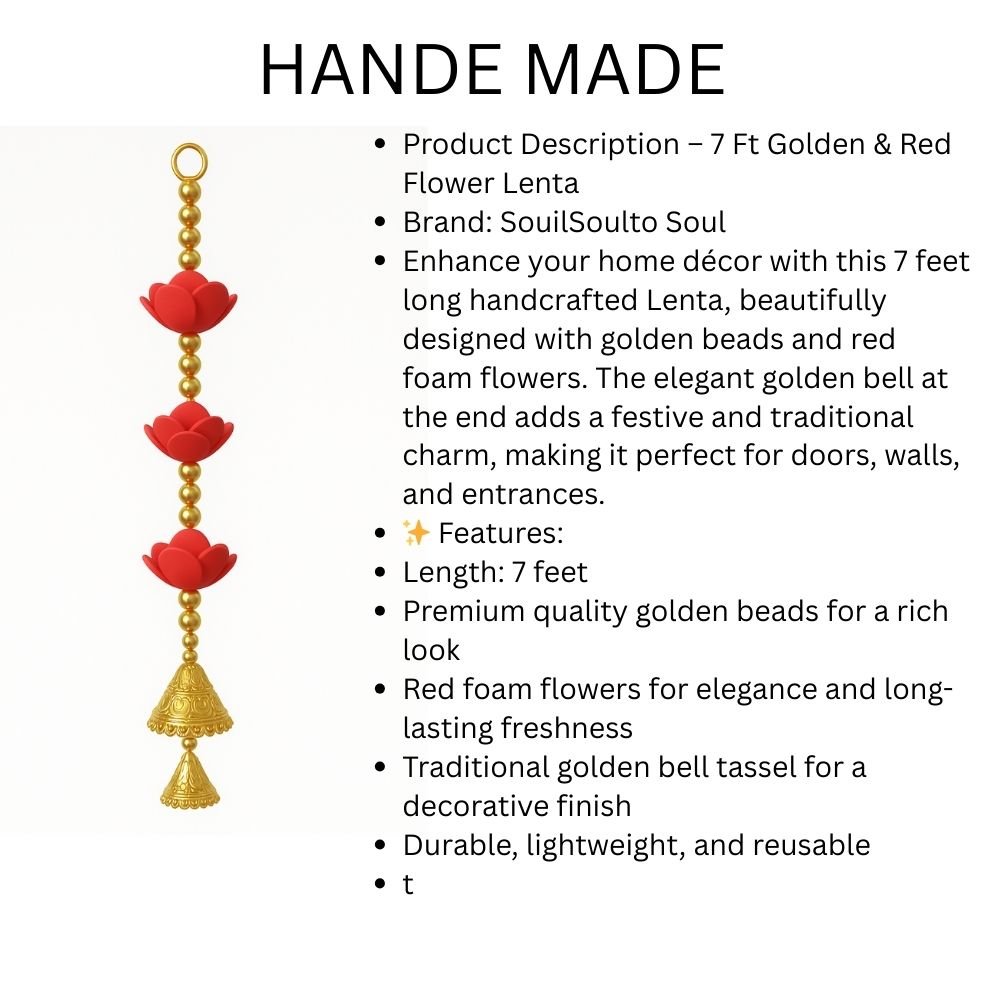 Enhance your home décor with this 7 feet long handcrafted Lenta, beautifully designed with golden beads and red foam flowers. The elegant golden bell at the end adds a festive and traditional charm, making it perfect for doors, walls, and entrances.
