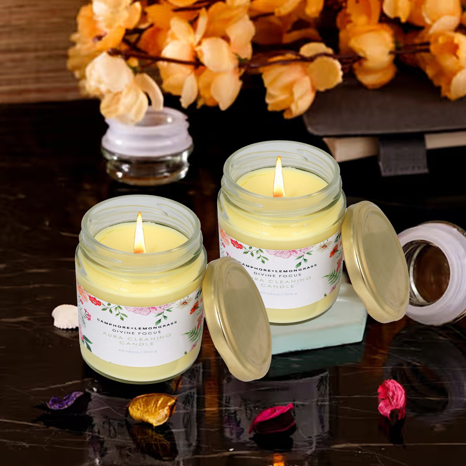 - Natural Soy Wax: Eco-friendly and clean burning.